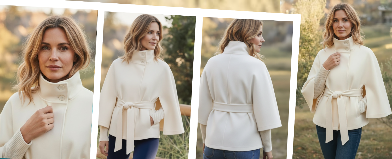 Crafted to transcend trends — the Colette Cape is designed for women who value timeless elegance, flattering form, and enduring quality.